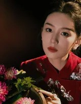 周也轻抚红色纱裙,姿态优雅如古典画卷,眼中闪烁着对新年的无限憧憬